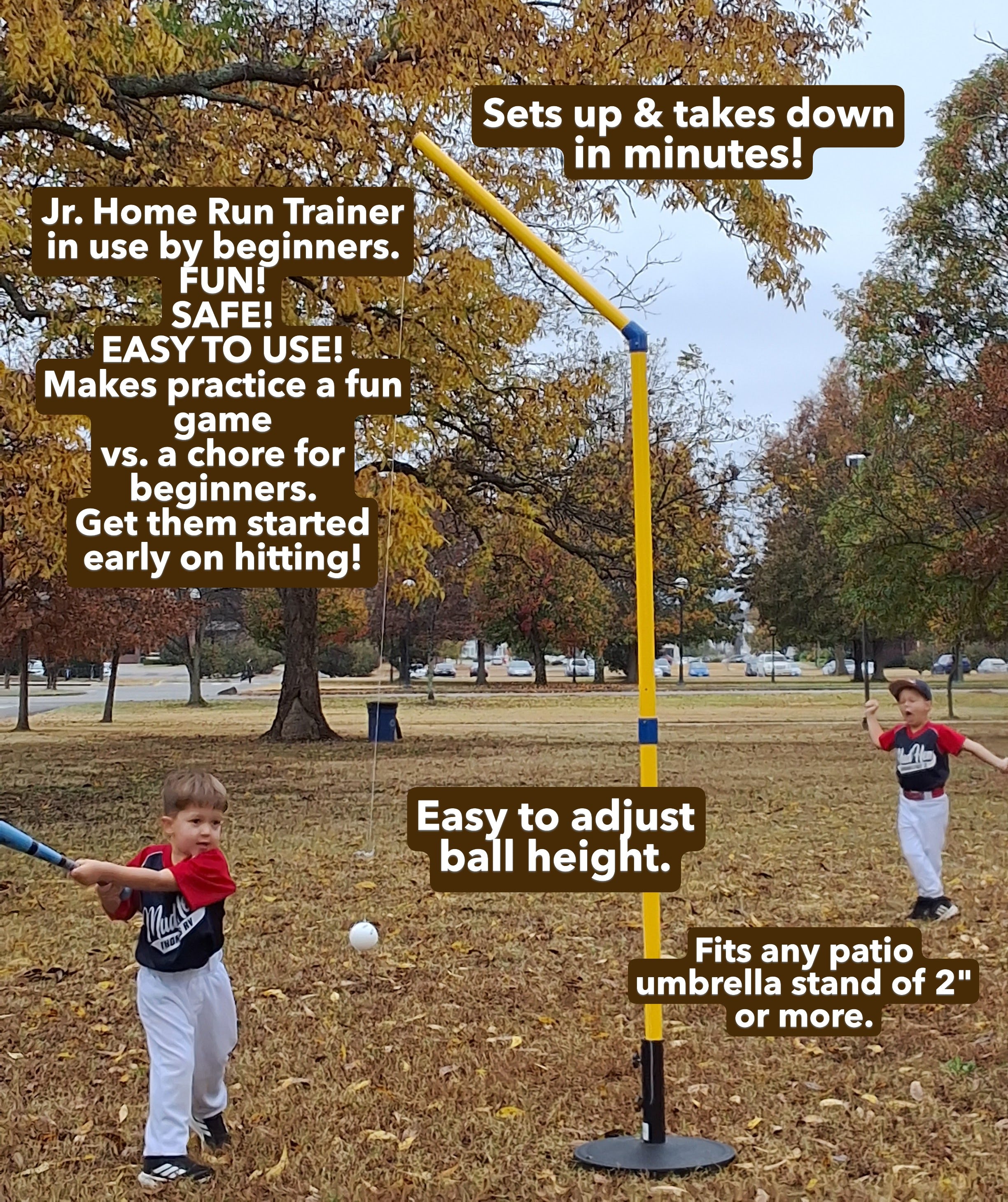 Transform your child’s baseball or softball practice! The HRJ2000 Junior Home Run Trainer™ (Patent Pending) helps kids ages 5–7 learn to hit a moving ball instead of a stationary tee. This accelerates swing development, improves hand-eye coordination, and builds confidence from day one.