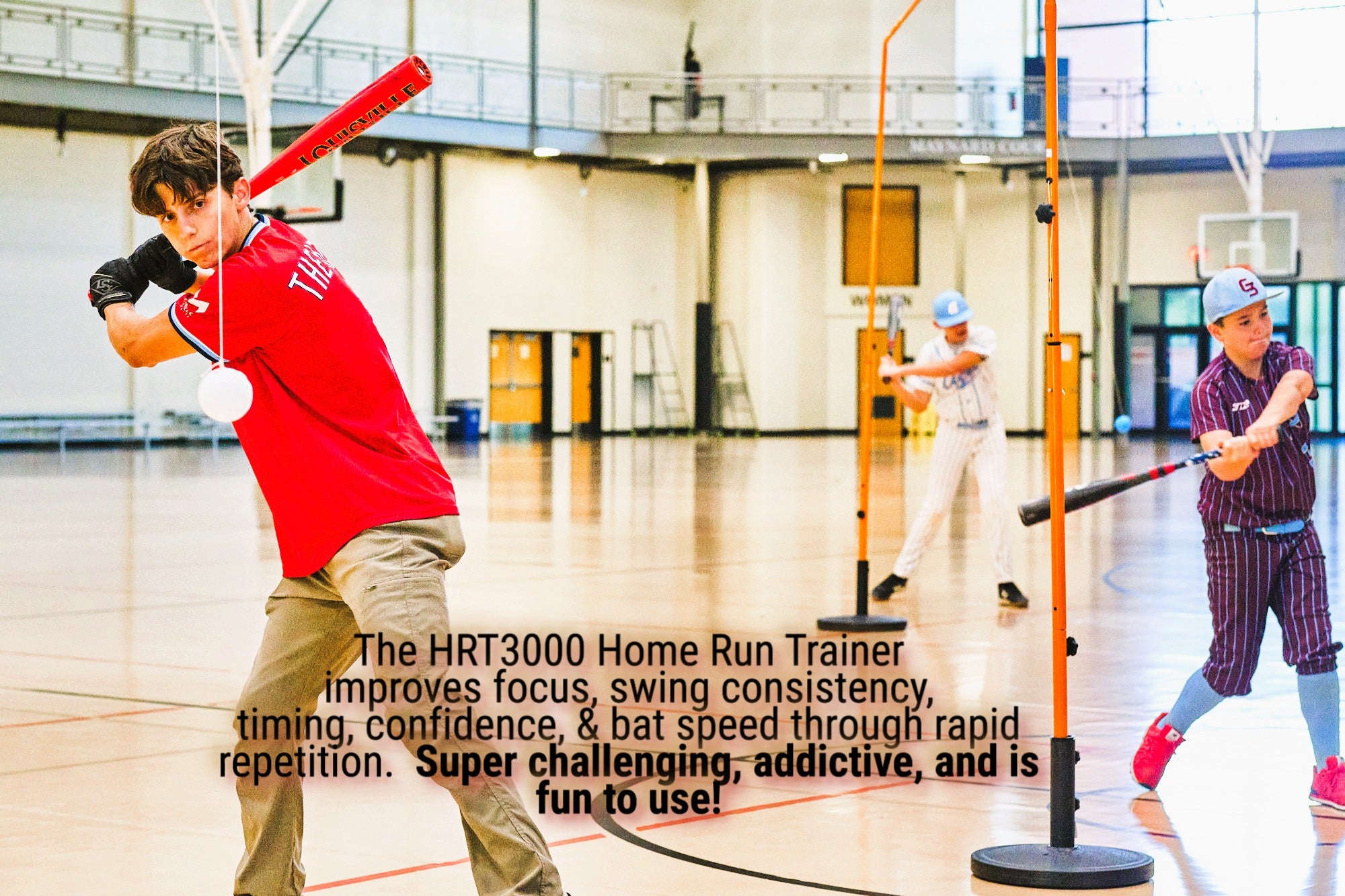 The HRT3000 Home Run Trainer™ is the next-level hitting system designed for ballplayers ages 8+ to improve strength, bat speed, and timing. Unlike a tee, which trains players to hit a stationary ball, the HRT3000 requires hitters to track and hit a moving ball, building real-game skills immediately transferable to the field.
